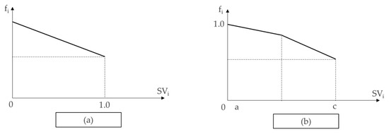Variables can be either continuous or categorical, and the fi–SVi relationship illustrated in Figure 8 can be used according to the variable (Figure 8a shows a discrete categorical variable, while Figure 8b shows two or more categorical variables).