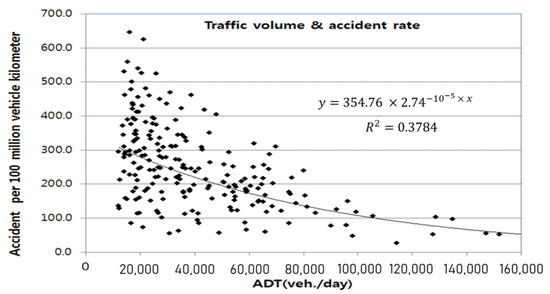 In the relationship between speed and accident rate, the accident rate increases as the speed becomes lower or higher, and the number of accidents causing injuries and property damage increases exponentially with the speed [15,16,17].