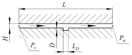 - Balasan’yan, V.S. Flat rectangular aerostatic bearing with a microgroove. Fluid Dyn. 1973, 8, 644–647. [Google Scholar] [CrossRef]