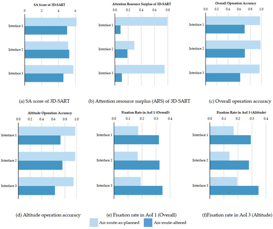 Chen, H.; Pang, L.; Wanyan, X.; Liu, S.; Fang, Y.; Tao, D. Effects of Air Route Alternation and Display Design on an Operator’s Situation Awareness, Task Performance and Mental Workload in Simulated Flight Tasks. Appl. Sci. 2021, 11, 5745. https://doi.org/10.3390/app11125745