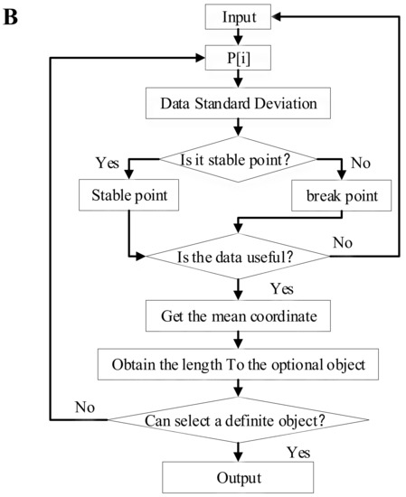 Similarly, we measured the jitter of the hand’s indicator points (Table 2). We can see that the stability of the finger indicator points is better than that of the eye tracker. However, in experience, the stability of the hand is required to be higher. The reason is that the eye tracker is calibrated for each person and directly displays the center of the line of sight, which is equivalent to an open loop. The hand indicates points, which is only based on the subjective feeling of people. The sensor recognizes the general direction, and then the user needs to fine-tune the finger direction according to the position of the indication point, which is equivalent to brain–hand–eye feedback. So, from experience, we hope that the indication point has less jitter. After adding a filter (Equation (5)), the variance in jitter is reduced, and the average distance from the target point is also lower.
