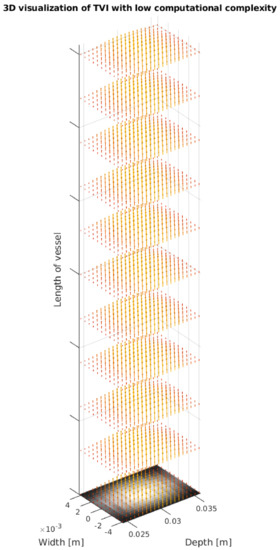 17] presented volumetric tensor velocity imaging (TVI) using a 1024 element fully addressed transducer array and computationally heavy synthetic aperture (SA) flow estimation. In TVI, the full 3D velocity vector is estimated throughout the imaged volume, providing complete flow information. An example of a tensor velocity image is shown in