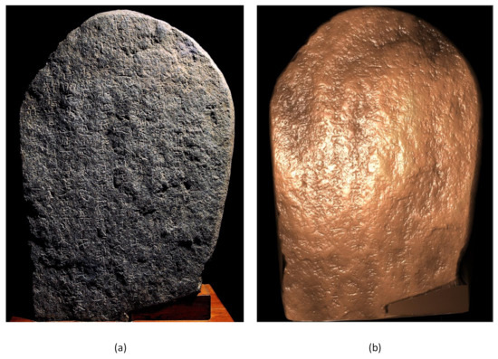 Figure 5. Musul-ojakbi stele: (a) 2D photograph; and (b) 3D scanned data.