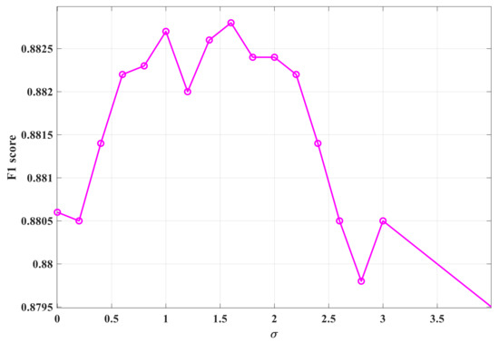 Figure 8. Performance of RF models (in terms of F1 score) under different σ values.