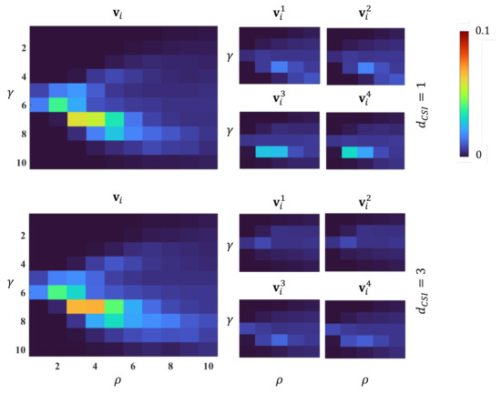 • Concatenation: All five vectors obtained from the output of the vectorization stages are concatenated to a single feature vector of length N γ N ρ + 4 N γ N ρ s 2 . The concatenated array forms the CSI and it is denoted as C ( v i ) .