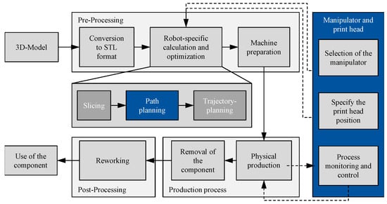 - Corves, B.; Hüsing, M.; Wiartalla, J.; Schmitz, M. 7. IFToMM D-A-CH Konferenz 2021, 18./19. Februar 2021. Online-Konferenz. Manipulatorspezifische Pfadplanung für die Multidirektionale Additive Fertigung. Siebte IFToMM D-A-CH Konferenz 2021: 18./19. Februar 2021, Online-Konferenz 2021. Available online: https://doi.org/10.17185/duepublico/74042 (accessed on 20 June 2021).