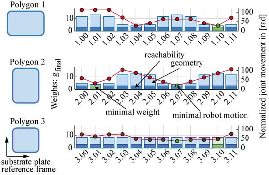 | Fang et al. [8] | segmented consideration of paths (cf. Figure 5b) | include process parameter into optimization, optimize robot motion | use of rotational degree of freedom around the welding head |