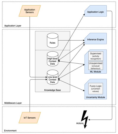 - Li, X.; Eckert, M.; Martinez, J.F.; Rubio, G. Context aware middleware architectures: Survey and challenges. Sensors 2015, 15, 20570–20607. [Google Scholar] [CrossRef] [PubMed]