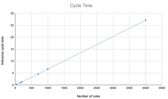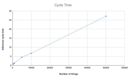 Finally, computational performance is related to the ability of the reasoner to produce an updated, high-level context when required by the IoT applications and devices. Ontologies may show decreased performance as the ecosystem scales up and the volume of data increases [], although Instance Store [] was introduced to partially solve the issue. Rule-based logic, being less resource intensive, shows better performance and behavior with scalable ecosystems [].