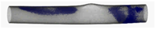 Hydrogen distribution in the cladding around the burst opening of rod #04 of the QUENCH-L3 test (the positions containing hydrogen are marked with blue color).