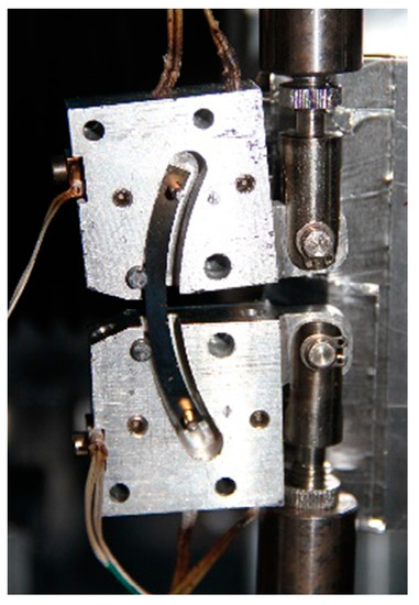 Sample holder constructed by CNEA, Buenos Aires, for a mechanical load machine to perform tensile tests at higher temperatures.