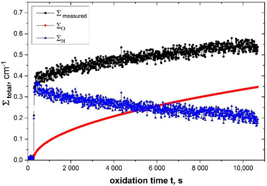 Equation (2) was applied for the subtraction of the contribution of the oxygen to the increase in the total macroscopic neutron cross section of the sample measured in the in situ experiment. The dependence of Δ