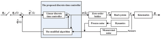 The control objective is to design a discrete-time control law, where the AUV can follow the reference trajectory as the time increases. The schematic diagram of the proposed controller is shown in Figure 2. The symbols used throughout this paper are presented in Table 1.