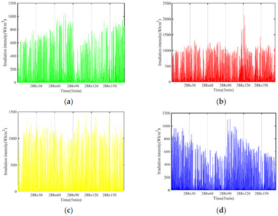 29]. Several types of elements affecting solar radiation are determined firstly as the input features, then a nonlinear and highly complex mapping relationship is constructed. Finally, the model parameters are learned according to historical data. Traditional statistical methods cannot attain the above complex representation in most situations. In contrast, machine learning methods can overcome this deficiency.