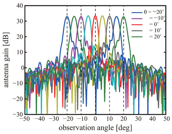 Simulated far-field patterns in H-plane of reconfigurable millimeter-wave reflectarray antennas when observation angles are changed from = −20 to 20.