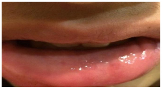 A 14-year-old male patient came to the dental clinic of the University of L’Aquila, complaining about the presence of a swelling on the mucosal surface of the inferior lip. While completing the anamnestic interview, the patient stated that the swelling started 25 days ago and that it slowly increased in volume. The intraoral inspection revealed a swelling measuring 10 mm, with elastic consistency, red and blue colored, not fluctuant and painless (Figure 1). Based on the age and the position, a mucous extravasation mucocele was the presumed clinical diagnosis. The parents of the patient gave their consent to the publication of this case.