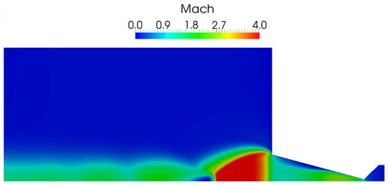 Contour plot of the Mach number for the baseline configuration of the nitrogen gaseous flow (test case N2_1).
