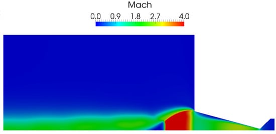 Contour plot of the Mach number for the baseline configuration of the water vapor flow (test case H2O_1).