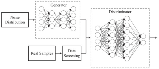 The GAN was proposed by Goodfellow et al. in 2014, and consists of two essential components, namely, the generator and the discriminator. Through the zero-sum game, GANs can be trained to generate more realistic data. GAN is widely used in image generation and recognition, speech generation and recognition, data generation, and other fields. The main thought behind GAN is using adversarial networks to improve the quality of generated data. The generator learns the probability distribution of the original data and generates artificial samples that mimic the pattern, using random noises. The discriminator discriminates the artificially generated data from the actual data and prompts the generator to produce better quality data in the next iteration. The general semantics flow chart of GAN is depicted in Figure 2.