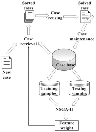 The case model in the CBR process is described as . means there are m cases in total, stands for the kth case in the case base. expresses the characteristics of what describes. expresses the characteristics solutions of the case . expresses the case weight of the case .