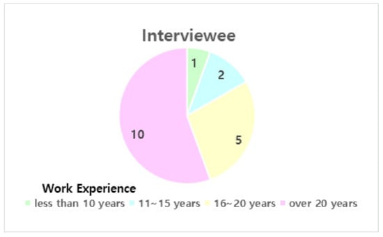 The location of a temporary road for trucks during a construction phase is an important factor, as distance can affect the overall cost of the process. However, despite these important factors, only a limited number of studies can be found in relation to this problem. In addition, Korea’s specifications for temporary roads are somewhat different for each design standard, and only basic contents related to road installation are presented. For this reason, most of the time, temporary roads are planned and installed by experienced workers at the start of construction. Thus, for this study, 18 construction managers and experienced workers working at 9 companies (Figure 3) were surveyed to analyze their know-how and heuristics regarding the installation of temporary roads. Here, the important factors when deciding temporary roads are summarized in Table 1. Next, five important factors were selected and weight values for each of these factors were set based on the AHP (analytic hierarchy process) technique. These values can be seen in Table 2, where the weight values were 42%, 12%, 14%, 17%, and 15% for transport distance, slope, cut soil, civil complaints, and distance to structure, respectively. Here, the consistency index (CI) was 7.7%.