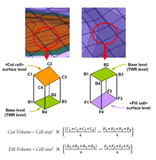 - Lee, C.K.; Kim, S.K.; Sung, Y.J. A Study on 2D-Based Earthwork Planning Methods. KSCE J. Civ. Eng. 2003, 23, 349–357. [Google Scholar]