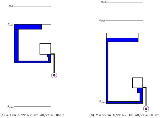 when spinning at an angular frequency . Given typical experimental values, e.g., , , , lower elevated spin rates and , Equation (1) yields and , respectively. So even the larger value of (13) only induces roughly one third of the standard atmospheric pressure .