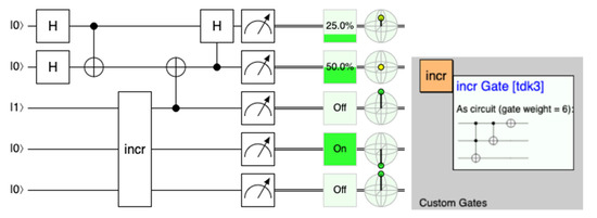 Circuit including the reuse of a module (called “incr” and detailed on the right side) with functional cohesion (image obtained using the https://algassert.com tool, accessed on 23 June 2021).