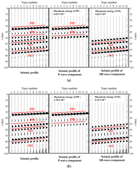 (4) In the fault fracture zone model, the reflected S-wave energy is strong and the phase axis is relatively continuous in the seismic profiles received on the same side of the blasting inspection. The S-wave profile can better distinguish two reflection interfaces which are close to each other.