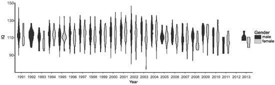 - Flynn, J.R. The mean IQ of Americans: Massive gains 1932 to 1978. Psychol. Bull. 1984, 95, 29–51. [Google Scholar] [CrossRef]