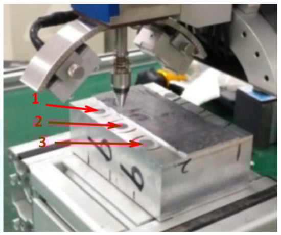 The three test points on the milled surface.