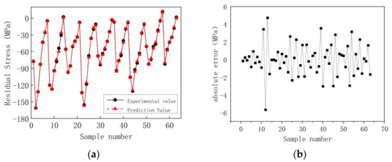 The prediction results of the BP neural network: (a) the prediction results; (b) the prediction error.