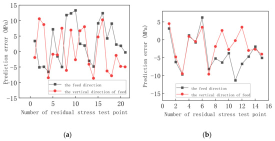 The prediction error: (a) the prediction error of the end milling prediction model; (b) the prediction error of the side milling prediction model.