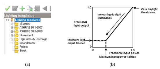(a) DesignBuilder lightning templates. (b) Linear control concept.