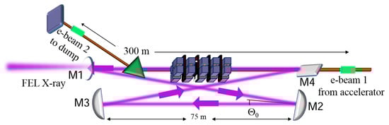 - Huang, Z.; Ruth, R.D. Fully Coherent X-Ray Pulses from a Regenerative-Amplifier Free-Electron Laser. Phys. Rev. Lett. 2006, 96, 144801. [Google Scholar] [CrossRef] [Green Version]
