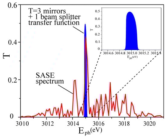 Figure 4 presents the transfer function T of the total optical line as a function of the energy of the photons for a central energy of 3.015 keV and a quasi-orthogonal reflection (incidence angle  = 3°), compared with the natural SASE spectral line.