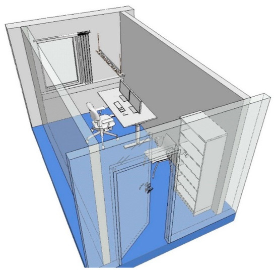The case study involved an administrative office (approximately 10 m2; but at least 4.2 m × 2.1 m, Figure 3) from PTS. The detailed list of building criteria for the single person occupancy administrative office was obtained through Regionfastigheter Jönköping, Sweden. The building criteria in the PTS are not explained or categorized in any specific way, making it rather difficult for formulating a prioritization about it. Therefore, the investigation of the list of building criteria was first categorized and later searched to find the value and possible evidence related to the particular criteria.
