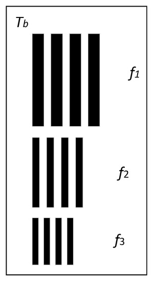(4) For the periodic rectangular line target with frequency , the filtering effect of the human eye on the narrowband space can be equivalent to a matched filter, filtered by the frequency domain of the human eye, in the horizontal direction, and the integral effect of the human eye can be captured by replacing the actual system bandwidth with the noise bandwidth , which takes into account the effect of eye matching filter