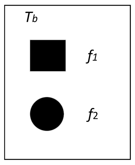 Infrared imaging technology shows great advantages in target detection and is widely used in agriculture [1], medicine [2], military [3,4], industrial [5,6,7] and other fields [8]. Due to the limitation of the manufacturing process of infrared imaging detectors, the performance of the infrared imaging system needs to be optimized. Therefore, it is necessary to optimize the design of the infrared imaging system according to different application fields [9,10]. The theoretical research of infrared imaging systems is the theoretical basis for the development of infrared imaging technology [11,12]. Among them, the performance evaluation theory can provide theoretical guidance for the design and optimization of the infrared imaging system [13,14]. MRTD (minimum resolvable temperature difference) and MDTD (minimum detectable temperature difference) have been important parameters for evaluating the performance of infrared imaging systems, mainly because they can quantify the temperature resolution capability of infrared imaging systems [15,16,17,18,19]. MRTD is defined as a standard four-bar blackbody target pattern with a certain spatial frequency and a height ratio of 7:1 in a uniform blackbody background (as shown in Figure 1) [20,21,22]. When observed for a long time, the temperature difference between the target and the background gradually increases from zero until the observer confirms that the target pattern with four-bars can be distinguished (50% probability). The temperature difference between the target and the background is the minimum resolvable temperature difference at that frequency. MDTD is defined as when the observer can just distinguish the shape and position of a square or round black-body target with a certain size through the display screen without time limitation (as shown in Figure 2). The temperature difference between the black-body target and the black-body background is called the MDTD [23,24,25,26]. MRTD and MDTD calculations help in the design of detectors and actual systems. The first mature infrared imaging system performance prediction model (the Ratches Model) was named after the proposer of the theory, and was developed by the American Night Vision Laboratory in 1975 [27]. The FLIR92 model is widely used in the performance evaluation of infrared imaging systems because it adds a three-dimensional noise model, which can predict the performance of scanning and staring imaging systems. By introducing a modulation transfer function and a new human eye model, it adds an analysis of the effect on sampling to better evaluate gaze imaging systems [28,29]. However, the evaluation models of infrared imaging systems are mostly for infrared imaging systems in telephoto mode. Due to the lack of comprehensively considering 1) the characteristics of the TMISs (thermal microscope imaging systems) and 2) the difference in spectral radiant flux, which are factors that cannot be ignored, none of the above-mentioned methods can accurately and comprehensively evaluate the performance of the TMISs, and so there is currently no standard method for evaluating the performance of the TMISs. The imaging device can only be selected based on experience when designing the TMISs, which leads to the failure of the best performance of the imaging device in the process of designing the system, and the inability to select appropriate design schemes for different detection targets.