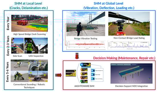 SHM at local and global levels using noncontact methods and advanced decision making.