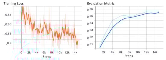 The TF-Ranking model was trained on the generated dataset only for 15,000 steps to initialize the model without causing overfitting. The model will gradually improve in the deployed decision support system and incrementally learn the valuable deep features of the ranking methodology as the infrastructure owner makes changes in the ranking orders. The training performance of the model is shown in Figure 13. Training loss indicates how successfully the model converged with the training batches of the data at each step. The evaluation metric that was used in the model is normalized discounted cumulative gain (NDCG), a commonly used metric to measure ranking quality [].