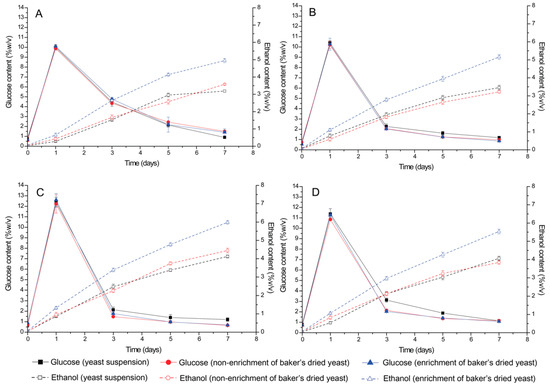 3.1. Comparison of the Starter Culture in Alcohol Fermentation