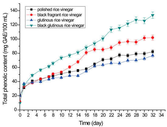3.3.1. Total Phenolic Content of Rice Vinegars