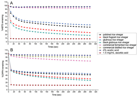 - Shimoji, Y.; Tamura, Y.; Nakamura, Y.; Nanda, K.; Nishidai, S.; Nishikawa, Y.; Ishihara, N.; Uenakai, K.; Ohigashi, H. Isolation and identification of DPPH radical scavenging compounds in Kurosu (Japanese unpolished rice vinegar). J. Agric. Food. Chem. 2002, 50, 6501–6503. [Google Scholar] [CrossRef]
