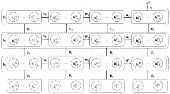 The structure of an RNN (Time Steps 4, Units 14 and Layers 3).