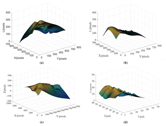 As shown in Figure 9, the dimension L and coordinates (x and y) of 25 sailing ships in the actual scene were detected by the YOLO algorithm to construct a 3D curved surface. The coordinates (trajectories) of the simulation ship can be calculated by Formula (9). The dimension L of the ship can be calculated by the curved surface and the coordinates of the ship. The posture of the simulation ship was selected manually. Therefore, all three elements of SRS images were obtained. The SRS images generated by the proposed method are shown in Figure 10a,b.