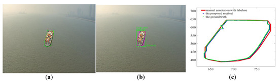 In this paper, the automatic labeling algorithm and manual labeling method proposed were used to label the cargo ship, which was taken as an example. The labeling results are shown in Figure 12.