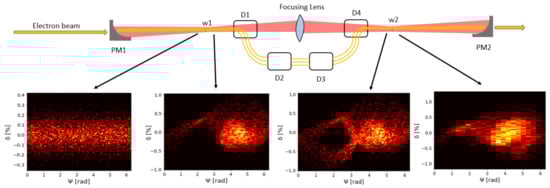 is the linear longitudinal dispersion, is bending angle, d is distance between the dipoles and L is the dipole length []. These transformations are useful to express the dynamical shifts of the phase-space density: