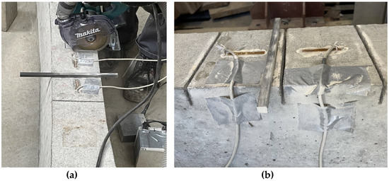 Quality of the specimens’ surface and grain size are important factors for stress (or strain) measurements. Thus, a foil strain gauge should be selected considering these parameters. It is necessary to identify the aggregate grain size of the examined prestressed concrete structure and then prepare a smooth surface before installing a strain gauge. These difficulties result from the inhomogeneity of the concrete. Generally, in the case of precast concrete members, such as prestressed concrete sleepers, the better quality of used concrete can be expected. Nevertheless, some aged monolithic structures can be, in terms of concrete quality, very problematic. For the strain measurements, as can be seen in Figure 9, the measuring grid length of the strain gauge should be at least five times as long as the largest aggregate grain size. In the case of the precast concrete sleepers in question, the 50 mm long measuring grid was sufficient.