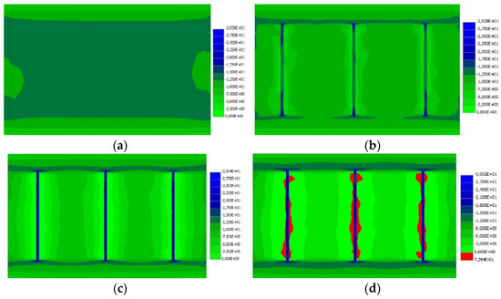 Stress change for p = 0.85×Pmax. Stage 0 (a); Stage 1 (b); Stage 2 (c); Stage 3 (d).